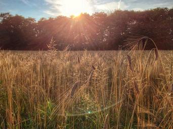 Keywords: spike cornfield field sunset harvest agriculture cereals grain back light sunlight sunbeam