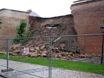 Keywords: Špilberk, collapsed wall (1).jpeg cs Zřícená část hradeb hradu Špilberk v Brně en Collapsed portion of the walls of Špilberk Castle Brno Czech Republic own DaBler 2010-06-16 49 11 41 933 N 16 35 53 114 E Špilberk Castle