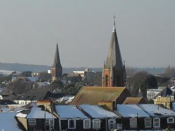 | Keywords: Spires of St Botolph's and Holy Trinity Churches, Worthing.JPG en Roofscape in Worthing West Sussex with the spires of Holy Trinity parish church Shelley Road foreground and St Botolph's parish church Lansdowne Road Heene background seen from the roof of the multistorey car park on the seafront own 2009-12-18 The Voice of Hassocks Cc-zero DEFAULTSORT Worthing Broach spires in West Sussex Chimneys in West Sussex Church spires in West Sussex Churches in England in snow Gothic revival church towers in West Sussex Gothic revival spires in West Sussex Holy Trinity Church Worthing Houses in West Sussex Roofs in West Sussex Roofscapes in the United Kingdom St Botolph's Church Heene Snow in West Sussex |