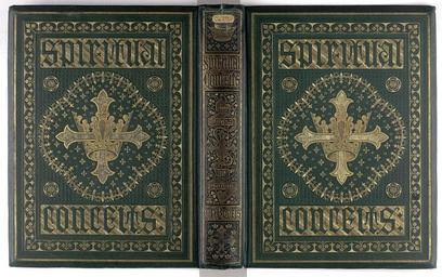 | Keywords: Spiritual Conceits. - Both covers and spine (c109b1).jpg Style Publishers binding Lettered cover eg intitals titles Crown motif Floral; Caption Both covers and spine; Colour Green; Edge Gilt exhibition history Decorative Technique Blocked in gold Blocked in blind Blocked in relief; Cover Material Cloth morocco vertical grain The design is by William Harry Rogers London Griffith and Farran Corner of St Paul's Churchyard 1862 London Chiswick Press - Printed by Whittingham and Wilkins Tooks Court Chancery Lane 155x210x35mm 16 224p On the title page verso The engraving by Joseph Swain From the introduction by Rogers entitled ˜To the Reader ™ The book now offered to the public is an original illustrated companion having only such affinity to its predecessors as must needs result from its being composed of certain emblematical devices with accompanying letter-press the devices and the letter-press so illustrating each other as to be manifestly inseparable In the second place the fact that the editor and the artist are the same person is probably a novel feature In the third place the emblems have been so grouped as not to prevent a melange of ideas associated by accident but to give as far as possible one consecutive series of thoughts developing Savanarola ™s comprehensive sentiment If there be no enemy no fight; if no fight no victory; if no victory no crown The Fathers of the Church the noblest divines of the Middle Ages and the Old English poets have been pressed into the service of one fixed and unassailable idea which is clenched in the motto No Cross no Crown; and to this they have been asked to do duty in such wise as out of discordant parts to make one harmonious whole Bevelled boards Gilt edges Brown endpapers and pastedowns Binder's ticket on lower pastedown / Bound by/ Bone Son/ 76 Fleet St London / Ball no 17C Green morocco vertical-grain cloth Both covers are blocked identically in gold and in blind and in relief On the borders there are two fillets one blocked in gold the next blocked in blind Inside these a border of repeating patterns is blocked in gold The patterns are three hatch leaf and hanging diamonds each with four dots blocked inside in relief There is a rectangular central panel and at the head and tail rectangular gold lettering pieces are blocked The one at the head contains the word / Spiritual/ blocked in relief; the one at the tail contains the word / Conceits blocked in relief Each lettering piece has diagonal fillets which are blocked in vertical and horizontal hatch The hatched fillets alternate with those which are blocked in gold with small dots blocked in relief Four rose flowers are blocked in gold underneath and above the two rectangular gold lettering pieces They are surrounded by small stars blocked in relief The central panel is a quatrefoil and around its perimeter fleur-de-lis are blocked in gold in a repeating pattern At the very centre surrounded by small stars and circles blocked in gold an interlocking crown and a cross are blocked in gold The decorative elements of the crown and cross are picked out in hatch and in relief The spine decoration is all in gold and in relief There is a fillet blocked in gold around the perimeter The spine is divided into five panels Numbers 1 2 and 5 are formed by a single gold fillet At the head panel 1 contains a crow surrounded by small stars and circles all in gold Panel 2 has the title /Spiritual/ Conceits/ is blocked in relief within a square gold lettering piece Panel 3 has a descending scroll-like gold lettering-piece with the words No Cross No Crown blocked in relief inside In the centre of this panel the interlocking cross and crown are blocked The monogram WHR is blocked in relief at the base of the scroll-shaped gold lettering-piece In panel 4 / WH Rogers/ is blocked in relief inside a small gold lettering-piece In panel 5 a cross surrounded by small crowns and circles is blocked in gold See BL shelf mark 12304 e 18 Emblems of Christian life which has a similar design with only the title page and the title lettering on the covers being changed Text copyright Edmund M B King and available under a CC0 license For other Bone and Bone Son bindings see c30h19 object history Text 1862; London; Unspecified object type Cc-zero place of creation Binding England place of discovery Ball Douglas Victorian publishers' bindings / London Library Association c1985 p 158 says that Emblems of Christian Life is a new edition of Spiritual Conceits which he had not seen Blog http //19thcenturyartistsmonograms blogspot co uk/ E M B King William Harry Rogers p 320 Blog http //19thcenturyartistsmonograms blogspot co uk/ See M Packer Bookbinders of Victorian London London 1991 British Library image http //www bl uk/catalogues/bookbindings/LargeImage aspx RecordId 020-000003496 ImageId ImageId 58369 Copyright BL Spiritual Conceits Uploaded with GWToolset Spiritual Conceits - Both covers and spine c109b1 http //www webarchive org uk/bldatasets/bindings/C109b1 20both 20covers 20and 20spine jpg 19th-century bookbinding Bookbinding British Library Bookbindings |