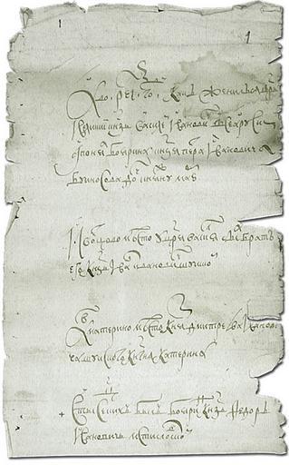 | Keywords: Spisok-svadby-vasilija-shujskogo-s-bujnosovoj-rostovskoj.jpg Чиновный список свадьбы ца я Василия Ивановича Шуйского с княжной а ьей Пет овной Буйносовой-Ростовской http //www rusarchives ru/smuta/03-03-spisok-svadby-vasilija-shujskogo shtml 1608 anonymous PD-old-100 Vasily IV of Russia Files uploaded by Shakko from various sources Tsar's weddings 1608 documents 17th-century inscriptions Maria Petrovna Buynosova-Rostovskaya | ||||