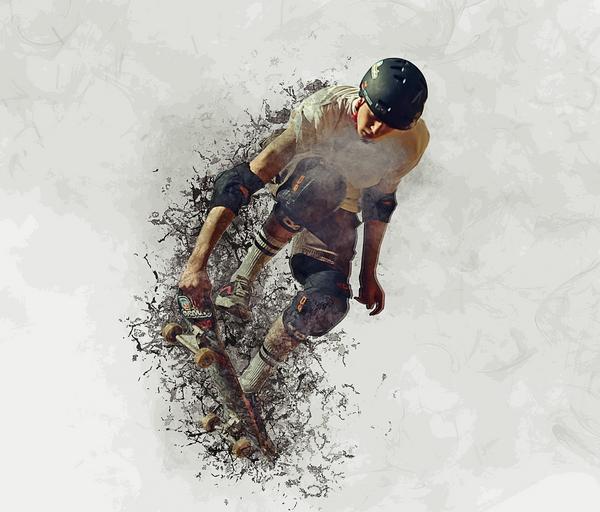 Keywords: split background wallpaper decomposition skateboard sport helmet jockey man boy dangerous road smoke art processing imagination abstract colors sketch action splashes painting