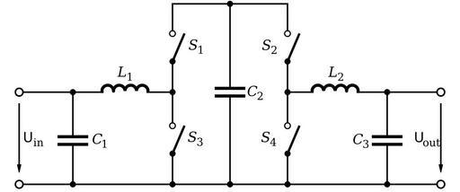 Keywords: Split-Pi SMPS.svg Split-pi switched-mode power supply SMPS circuit layout Own Inductiveload 2008-11-23 Boost-buck converters