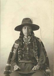 | Keywords: Spokane Indian, Washington, ca 1897 (LAROCHE 266).jpeg Photograph Creator Frank La Roche Studio portrait of a young man of the Spokane Washington State ca 1895-1899 He is wearing a wide-brimmed hat trimmed with fur fur decoration around his shoulders fur and beads on his shirt necklaces and a blanket across his shoulders Caption on image A Young Spokane brave Studio portrait of Spokane Indian man with hat trimmed with fur and blanket Subjects LCSH Portraits-Washington State ; Spokane Indians--Clothing dress depicted place Washington state ca 1897 Institution University of Washington UWASH-LAROCHE-source accession number laroche 266 PD-old-auto-1923 1936 Information field Order Number LAR118 Spokane tribe 19th-century portrait photographs of sitting men at half length Fur clothing of native people of North America Washington state in the 1890s Black and white photographs |