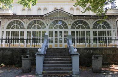 Keywords: Společenský dům, Darkov - zepředu.JPG cs Detail na přední část a terasu Společenského domu v Karviné-Darkově own Hellooo 2013-08-02 Společenský dům Darkov