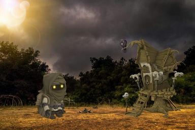 Keywords: spooky monster treehouse sun