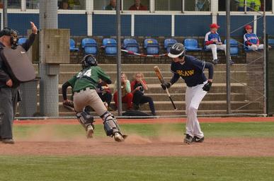 Keywords: sports baseball stadium contest referee catcher batsman passed ball grass gravel