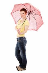 Keywords: spots fashion female girl happy isolated model people person pink rain smile standing umbrella weather white woman young