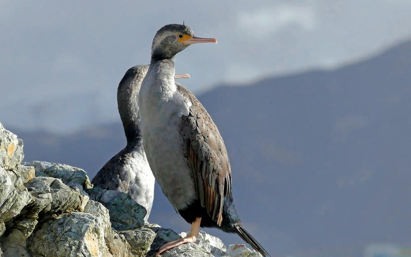 | Keywords: new zealand birds newzealandbirds spotted shags spottedshags marine birds marinebirds water birds waterbirds lumix fz1000 lumixfz1000 bridge ameras bridgeameras super zooms superzooms panasonic wildlife public domain dedication (cc0) publicdomaindedicationcc0 public domain publicdomain free photos freephotos outdoor animal bird Spotted shags (Stictocarbo punctatus) are best known for their striking breeding plumage, double crest and bright green facial skin. The pale grey front and light brown back and wings differ from the more common black-and-white shag colours. The Māori name is parekareka, and in Canterbury they are locally known as ‘flip-flaps’, from their laboured take-off from the water. Spotted shags (Stictocarbo punctatus) are best known for their striking breeding plumage, double crest and bright green facial skin. The pale grey front and light brown back and wings differ from the more common black-and-white shag colours. The Māori name is parekareka, and in Canterbury they are locally known as ‘flip-flaps’, from their laboured take-off from the water. |