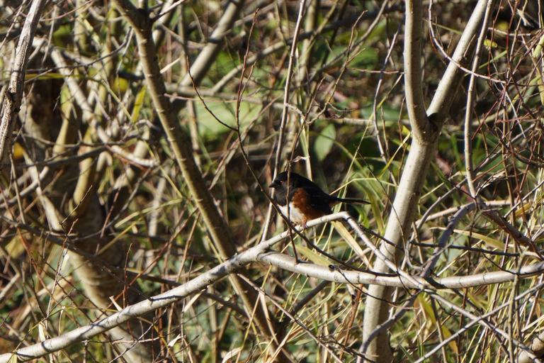 Keywords: towhee outdoor tangle Spotted Towhee at Juanita Wetlands Park. Rufous side showing. Spotted Towhee at Juanita Wetlands Park. Rufous side showing.
