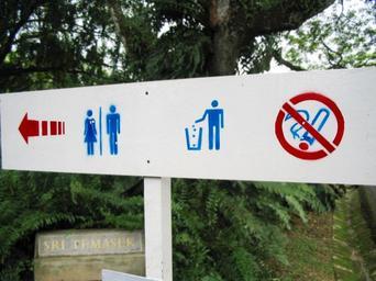 | Keywords: Spray painted directional signs.jpg en Spray-painted signboard directing visitors to Singapore's Istana to from left the toilets and litterbins and reminding them that smoking is prohibited zh-sg 新加 统 内以喷漆罐喷上的牌子,指向厕 和垃 桶的方向,并提醒到 统 的访客 统 是禁烟的 Own Goh wz 2006-12-31 1 29923 103 84385 Directional signs in Singapore |