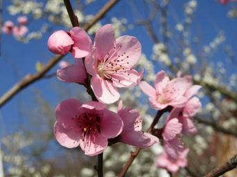 Keywords: spring flower tree branch blossom pink tree branches bloom sky cherry tree branch cherry blossom closeup cherry-tree
