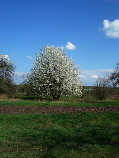 Keywords: spring flowering tree sky tree grass nature green leaves