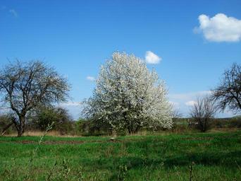 Keywords: spring flowering tree sky tree grass leaves nature