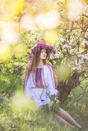 Keywords: spring girl ukrainka embroidery flowers portrait sun nature photo wreath youth