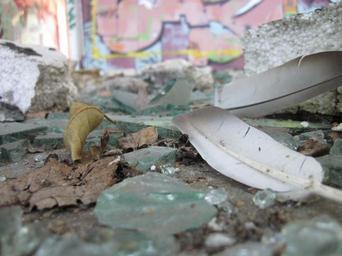 Keywords: spring glass splitter shard dirt destroyed broken graffiti leaves debris