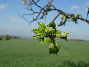 Keywords: spring leaves shoots nature bud buds drive trees knock out sky field