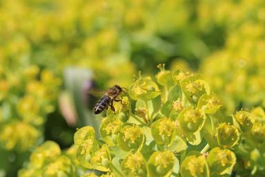 Keywords: spring nature blossom summer garden petal floral bloom colorful yellow flower bee