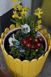 Keywords: spring osterglocken bellis pansy bloom flowers plant flowerpot planted decoration easter colorful