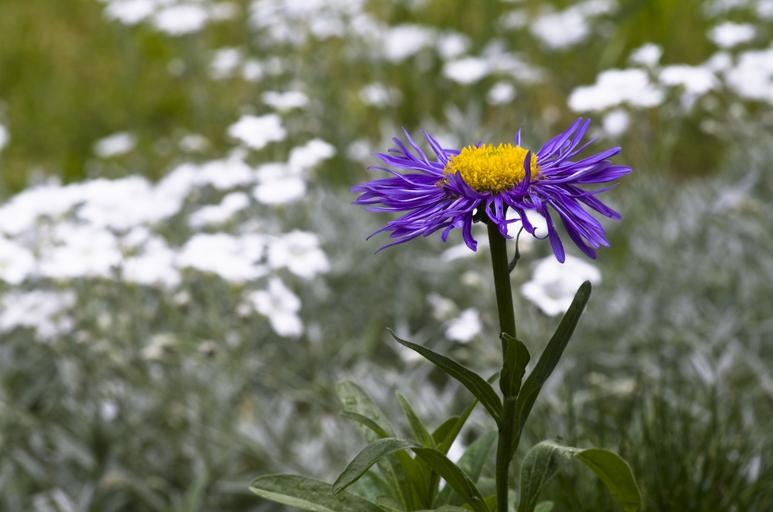 Keywords: spring violet aster flower blossom bloom garden stone garden