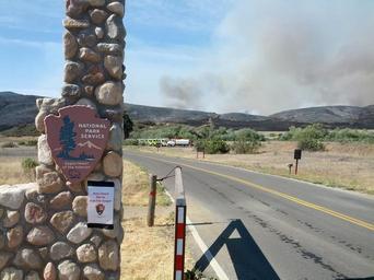 Keywords: springsfire fire ranchosierravista outdoor Entrance road to Rancho Sierra Vista with smoke in background. May 3, 2013. Entrance road to Rancho Sierra Vista with smoke in background. May 3, 2013.