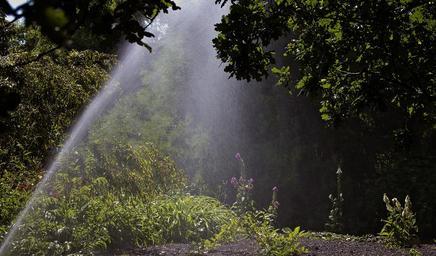 Keywords: sprinkler watering woodland garden watering