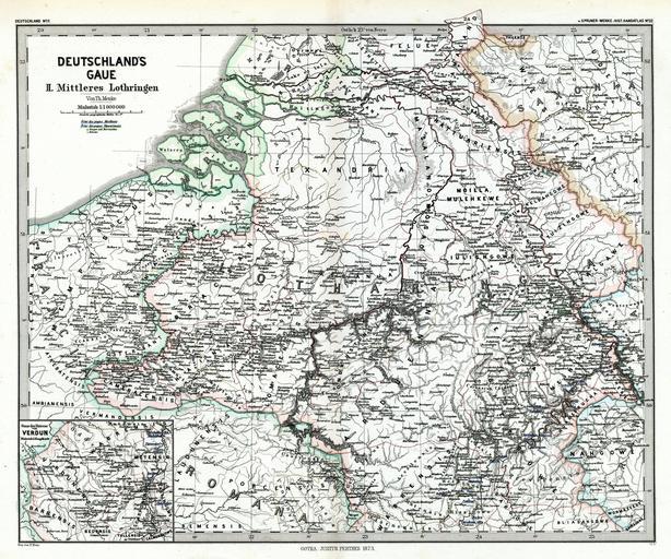 | Keywords: Spruner and Menke - Deutschland's Gaue. II. Mittleres Lothringen (...).jpeg en The regions gaue of Germany II Central Lorraine The regions gaue of the diocese of Verdun de Deutschland's Gaue II Mittleres Lothringen Gaue der Diöcese von Verdun http //www maproom org/00/46/present php m 0032 Hand-Atlas für die Geschichte des Mittelalters und die neueren Zeit The image was tiled together by User Fhmann with GraphicsMagick-montage Spruner Karl; Menke Theodor Published in Gotha by Justus Perthes 1880 PD-old Maps showing history of the Early Middle Ages Old maps of Belgium Old maps of the Rhineland Old maps of Lorraine 1873 maps |