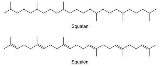 Keywords: Squalan Squalen.svg Struktur von Squalan und Squalen Structure of squalane and squalene own 2007-04-06 NEUROtiker Own work all rights released Public domain squalene Squalane