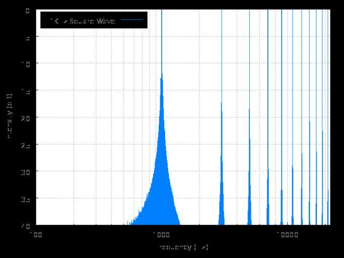 Keywords: Square1000 spectrum.png en wikipedia 2009 November 28 Spectrum analysis of uncompressed source for Square_wave_1000 ogg 5 seconds of square wave at 1000 Hz Note the logarithmic frequency scale The y-range of this graph may not be appropriate for comparison of similar waveforms; it is designed to match the frequency spectrum graphs for audio noises on en Colors of noise The analysis was done using en Audacity and plotting with en gnuplot Transparency was touched up in en GIMP to make the graph background pure white Instructions Obtain the frequency analysis from Audacity set the maximum number of windows and use a Hamming window The following script was used to generate the image n set terminal png transparent font /usr/share/fonts/truetype/ttf-bitstream-vera/Vera ttf size 800 600 enhancedset output square1000_spectrum png this seems to fix the trailers on the TTF font for the x-label set bmargin 4 enable grid set gridset grid mxtics set up x-axis set logscale x 10set xrange 100 22000set xlabel Frequency Hz set xtics border nomirror set up y-axis set yrange -40 0set ylabel Intensity dB set ytics border nomirror again to deal with bad bboxes on the TTF here also avoid the graph set key height 1 box plot the output from Audacity plot square1000 txt title 1KHz Square Wave with filledcurves x1 3 original upload log page en wikipedia Square1000+spectrum png '1' Upload date User Bytes Dimensions Comment - nowrap 2006-03-14 01 51 05 nowrap Ktims nowrap 4839 nowrap 800×600 <small><nowiki>Spectrum analysis of uncompressed source for Square_wave_1000 ogg 5 seconds of square wave at 1000 Hz Note the logarithmic frequency scale The analysis was done using Audacity and plotting with gnuplot Transparency was touched up in</nowiki></small> Audio spectrums |