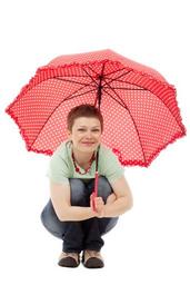 Keywords: squatting squat adult cheerful fashion female fun girl happy isolated joy people posing red smile umbrella woman young