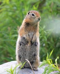 | Keywords: animal outdoor marmot mammal "People in Alaska, particularly around the Aleutians, refer to them as "Parka" (pronounced "par'kee") squirrels, most likely because their pelt is good for the ruff on parkas and for clothing... It is one of the few Arctic animals, along with their close relatives the marmots ... and the un-related little brown bat that hibernate. In the summer it forages for tundra plants, seeds, and fruit to increase body fat for its winter hibernation. By late summer the male Arctic ground squirrel begins to store food in its burrow so that in the spring it will have edible food until the new vegetation has grown. The burrows are lined with lichens, leaves, and muskox hair. During hibernation, its brain temperature drops to just above freezing, its core body temperature reaches temperatures down to -2.9 °C and its heart rate drops to ~1BPM. Peripheral, colonic, and blood temperatures become subzero." (from Wikipedia) "People in Alaska, particularly around the Aleutians, refer to them as "Parka" (pronounced "par'kee") squirrels, most likely because their pelt is good for the ruff on parkas and for clothing... It is one of the few Arctic animals, along with their close relatives the marmots ... and the un-related little brown bat that hibernate. In the summer it forages for tundra plants, seeds, and fruit to increase body fat for its winter hibernation. By late summer the male Arctic ground squirrel begins to store food in its burrow so that in the spring it will have edible food until the new vegetation has grown. The burrows are lined with lichens, leaves, and muskox hair. During hibernation, its brain temperature drops to just above freezing, its core body temperature reaches temperatures down to -2.9 °C and its heart rate drops to ~1BPM. Peripheral, colonic, and blood temperatures become subzero." (from Wikipedia) |