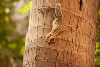 Keywords: squirrel climbing down coconut tree mammal rodent fur furry tail climb