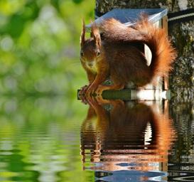 Keywords: squirrel nager cute mirroring water nature rodent climb garden eat brown nut