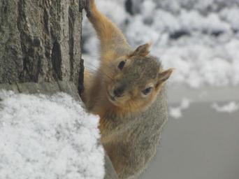 Keywords: squirrel mammal winter michigan animal outdoor Squirrel on side of tree. Squirrel on side of tree.
