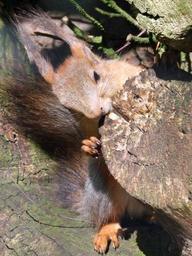 Keywords: squirrel sciurus rodent croissant animal animal world nager cute hair fur log brown grey