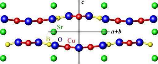 Keywords: SrCu2(BO3)2 room temperature phase.png en Room temperature structure of SrCu<sub>2</sub> BO<sub>3</sub> <sub>2</sub> own Perditax 2010-07-03 Crystal structures in space group number 121 Copper II borate