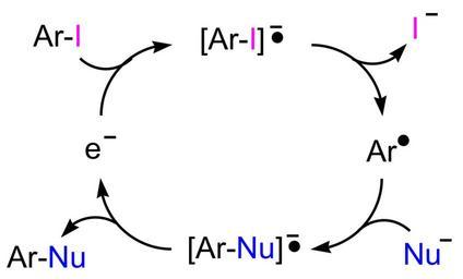 Keywords: SRN1 chain mechanism.svg C - Scheme of SRN1 chain mechanism own work with ChemDraw 2008-03-13 Su-no-G PD Nucleophilic aromatic substitution reactions