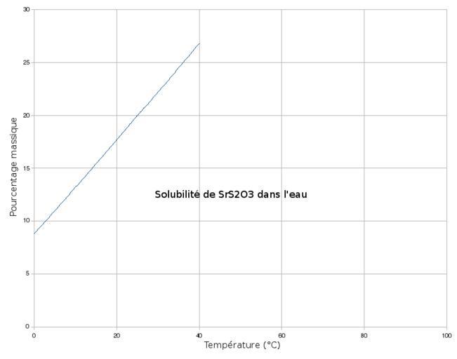 | Keywords: SrS2O3 Solubilite dans eau.png fr Solubilité de thiosulfate de strontium dans l'eau en fonction de la température Créée par mes soins avec OpenOffice org Calc et The Gimp d'après http //www hbcpnetbase com/ Handbook of Chemistry Physics Epop Thiosulfates |