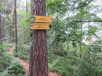 Keywords: SSM 5.JPG cs Označení Sloupského skalního města own Zákupák 2015-07-24 Sloupské skalní město Hiking and footpath fingerposts in Sloup v Čechách