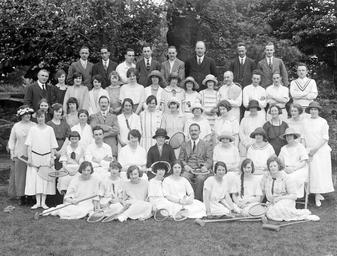 | Keywords: st. anne's union stannesunion lawn tennis club lawntennisclub tennis ireland munster tennis whites tenniswhites tennis racquets tennisracquets racquets croquet mallets sport hats thursday 5th june 1924 1920s twenties 20th century 20thcentury a.h. poole ahpoole arthur henri poole arthurhenripoole poole collection poolecollection glass negative glassnegative wristwatches waterford national library of ireland nationallibraryofireland blackandwhite monochrome outdoor black and white We believe this was taken at the opening meeting of this lawn tennis club in 1924. It looks as if they played croquet at St. Anne's as well, and how lovely to spot relatively early wearing of wristwatches too! Shame it's not possible to make out the time... Date: Thursday, 5 June 1924 NLI Ref: POOLEWP 3178 You can also view this image, and many thousands of others, on the NLI’s catalogue at catalogue.nli.ie We believe this was taken at the opening meeting of this lawn tennis club in 1924. It looks as if they played croquet at St. Anne's as well, and how lovely to spot relatively early wearing of wristwatches too! Shame it's not possible to make out the time... Date: Thursday, 5 June 1924 NLI Ref: POOLEWP 3178 You can also view this image, and many thousands of others, on the NLI’s catalogue at catalogue.nli.ie |
