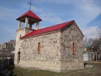 Keywords: St.barbara church in Surami.JPG en Saint Barabara church in Surami Georgia Built in the 2000s Georgian Wikipedia 2009-02-24 Jaba1977 ka Wikipedia Jaba1977 Surami Church of Saint Barbara Red roofs Bell towers in Georgia