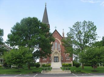 | Keywords: St. Francis' Catholic Church in Cranberry Prairie, front.jpg 40 23 34 N 84 34 55 W Front of w St Francis' Catholic Church Cranberry Prairie Ohio St Francis' Catholic Church located at the intersection of Cranberry and Fort Recovery-Minster Roads in Cranberry Prairie Ohio Cranberry Prairie an unincorporated area unincorporated community in Granville Township Mercer County Ohio Granville Township Mercer County Ohio Mercer County Ohio United States Built in 1906 the church and its rectory were listed together on the National Register of Historic Places as a part of the Land of the Cross-Tipped Churches Cross-Tipped Churches of Ohio Thematic Resources own 2010-05-27 User Nyttend Nyttend St Francis' Catholic Church Cranberry Prairie Ohio Building-centered pictures by User Nyttend Taken with Canon PowerShot A540 Churches in the United States photographed in 2010 |
