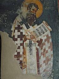 | Keywords: St. Gregory of Nyssa, prothesis.jpg mk Ф еска на св Г иго иј иски п отезис во ц квата Св Бого одица Пе ивлепта во Ох ид акедонија en Fresco of St Gregory of Nyssa prothesis in Church of the Theotokos Peribleptos in Ohrid Macedonia http //www kalamus com mk/pdf_spisanija/patrimonium_2/006 20Spisanie 202008 20Zarov 2003 pdf По т ети и натписи во олта скиот п осто на Св Бого одица Пе ивлепта во Ох ид author 13 century PD-Macedonia Paintings in the Church of the Theotokos Peribleptos Gregory of Nyssa |