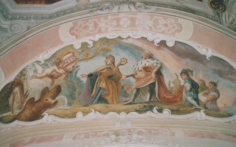 | Keywords: St. Hedwig (Legnickie Pole) 03.jpg St Hedwig Legnickie Pole Fresko um 1733 Der heilige Adalbert und Herzog Boleslaus der Tschechische gründen die Abtei in Brevnov self-photographed 2005-08-02 Creator Cosmas Damian Asam photographed by Hermetiker Licensed-PD-Art PD-old-100 cc-by-sa Hermetiker Frescos of Saint Hedwig church in Legnickie Pole |