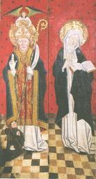 | Keywords: St Henrik heliga Birgitta Urjala.jpg en S t Henric and S t Birgitta writing down her Revelations Painting on an altar screen from the church of Urjala Tavastia sv S t Henric och S t Birgitta nedtecknande sina Uppenbarelser Målning på ett altarskåp från Urjala kyrka Tavastland Kari Tarkiainen Sveriges Österland p 206 Timo Lehtinen Middle age PD-Art Henry Bishop of Uppsala Birgitta of Sweden | ||||