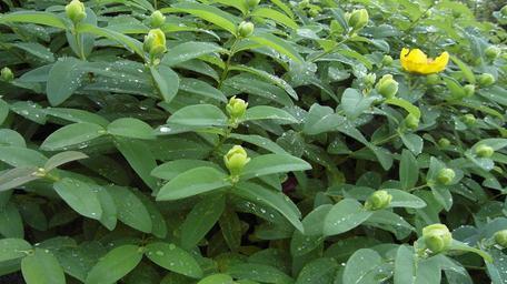 Keywords: st john's wort large cup-st john's wort flowers raindrop green garden hypericum calycinum plant