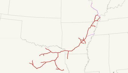| Keywords: St. Louis Southwestern Railway system map (1918).svg This is a map of the St Louis Southwestern Railway Cotton Belt system as of 1918 with trackage rights in purple Email me if you would like a copy of the GIS data I created modified from Bureau of Transportation Statistics North American Transportation Atlas Data or if you see any errors 2008-11-26 own assumed NE2 System maps of defunct U S railroads St Louis Southwestern Railway | ||||