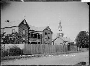 | Keywords: blackandwhite monochrome outdoor architecture building photo border black and white View of St Mary's Church and Convent. A man is standing on scaffolding erected on the church bell tower. Photograph taken by William A Price in early 1900s. Part of the Strand series. Inscriptions: Inscribed - Photographer's title on negative -bottom left: Strand Seriesbottom centre: St. Marys Church & Convent. Opotiki. NZ. 2202D. Quantity: 1 b&w original negative(s). Physical Description: Dry plate glass negative 4.5 x 6.5 inches St Mary's Church and Convent, Opotiki. Price, William Archer, 1866-1948 :Collection of post card negatives. Ref: 1/2-001306-G. Alexander Turnbull Library, Wellington, New Zealand. natlib.govt.nz/records/22736249 View of St Mary's Church and Convent. A man is standing on scaffolding erected on the church bell tower. Photograph taken by William A Price in early 1900s. Part of the Strand series. Inscriptions: Inscribed - Photographer's title on negative -bottom left: Strand Seriesbottom centre: St. Marys Church & Convent. Opotiki. NZ. 2202D. Quantity: 1 b&w original negative(s). Physical Description: Dry plate glass negative 4.5 x 6.5 inches St Mary's Church and Convent, Opotiki. Price, William Archer, 1866-1948 :Collection of post card negatives. Ref: 1/2-001306-G. Alexander Turnbull Library, Wellington, New Zealand. natlib.govt.nz/records/22736249 |