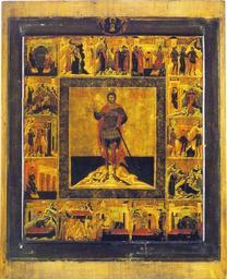 | Keywords: St Nikita.jpeg en Saint Nikita ru Великомученик икита с житием в 16 клеймах ачало XVII в Де ево левкас темпе а 53 8х44 5 см http //www cirota ru/forum/view php subj 48868 order pg 4 anonimus century 17 17th-century icons of Russia PD-Art Nikita Martyr Vita icon Levkas |