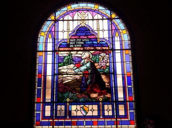 | Keywords: st paul umc big pool md stained glass church window stained glass window religion christian jesus christianity christ colorful methodist united methodist religious background not my will but thine be done architecture religious architectural buildings |